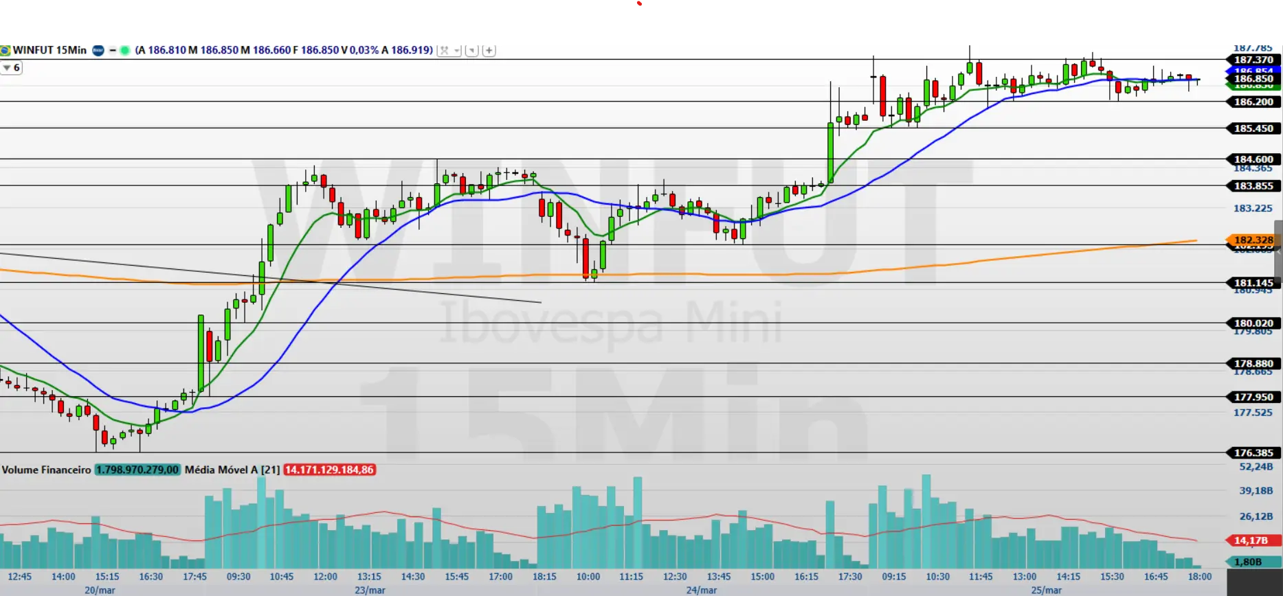 Crédito da imagem: Nelogica. Gráfico 15 minutos. Elaboração: Rodrigo Paz